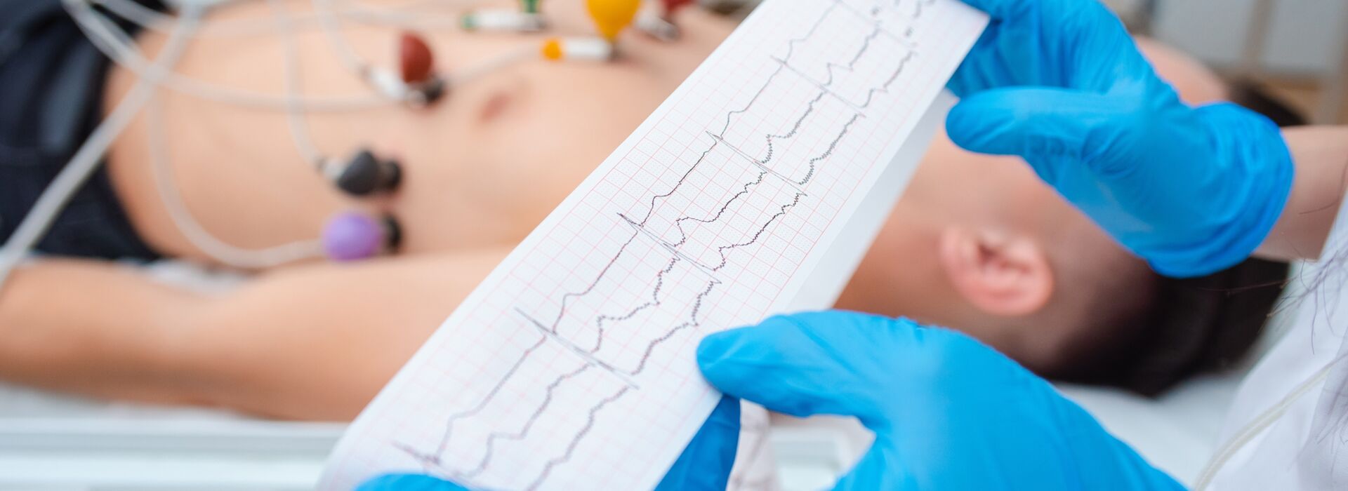 EKG ist die Abkürzung für Elektrokardiogramm. Mit dieser Methode werden die elektrischen Ströme in der Herzmuskulatur sichtbar gemacht, und somit der Herzrhythmus und die elektrische Leitung in der Muskulatur selber analysiert. Das diagnostische EKG ist eine sogenanntes 12-Kanal-EKG. Mit dem EKG lassen sich u.a. Rhythmusstörungen oder Veränderungen der Reizbildung und Reizleitung sowie im Akutfall lebensbedrohliche Erkrankungen diagnostizieren wie einen Herzinfarkt.